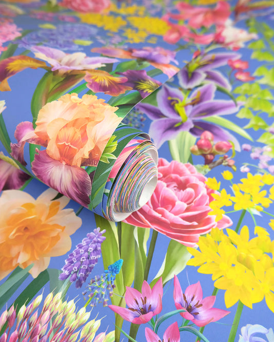 'Burst Into Bloom' Blue Wallpaper