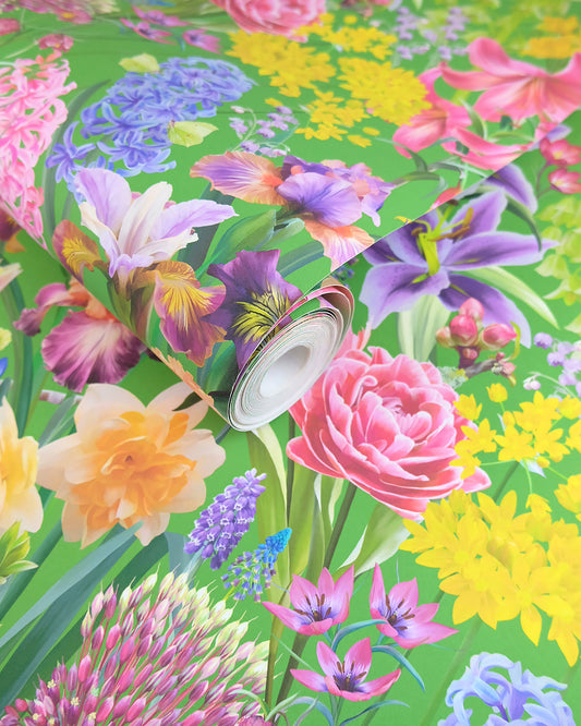 'Burst Into Bloom' Green Wallpaper