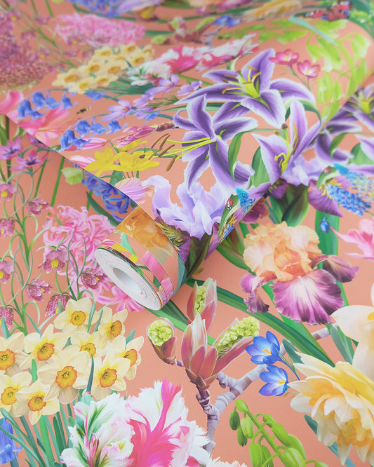 'Burst Into Bloom' Peach Wallpaper