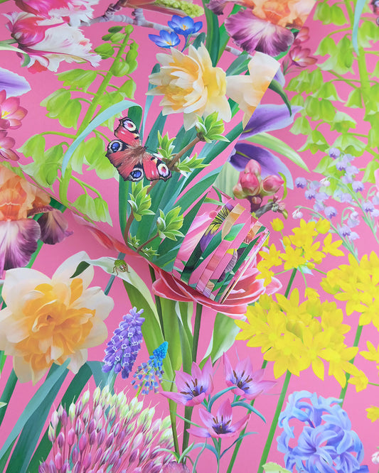 'Burst Into Bloom' Pink Wallpaper